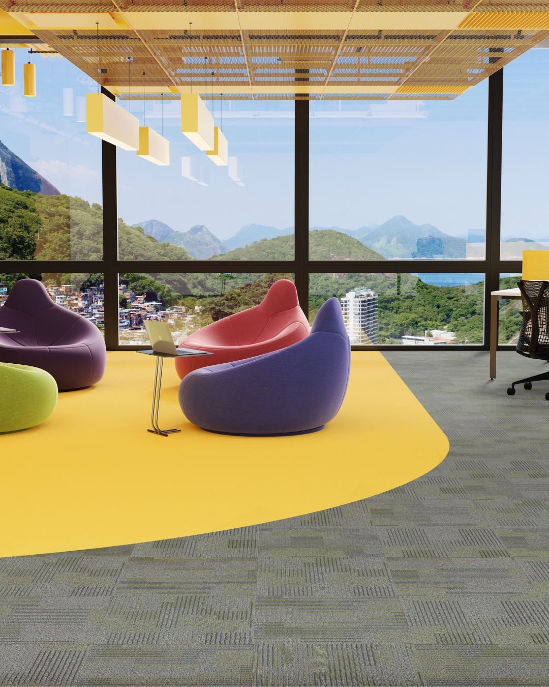 No mercado nacional, a Belgotex se destaca ao explorar essa tendência por meio dos conceitos Mix and Match e Transitions, combinando carpetes da coleção Interlude com o LVT autoportante Hercules Square Colours. O resultado são soluções versáteis, ideais para escritórios, áreas corporativas e varejo.